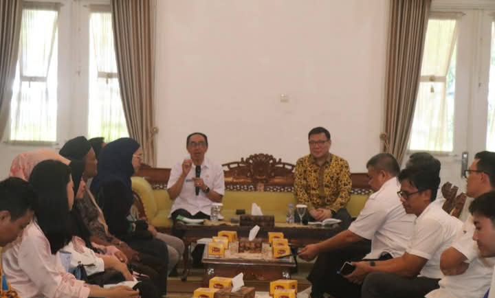 SukabumiLokal | Sekda Ade Suryaman memberikan Pengarahan sekaligus melepas mahasiswa ke Korea Selatan pada Rabu, (20/08/25) di Pendopo Sukabumi.