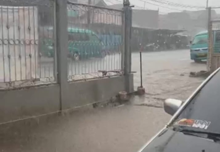 SukabumiLokal | Hujan deras yang mengguyur wilayah Kecamatan Cibadak, Kabupaten Sukabumi, Senin (13/10/2025), kembali membuat Jalan Raya Siliwangi berubah menjadi “kolam dadakan”. Ironisnya, peristiwa itu diduga kuat akibat konstruksi asal-asalan di depan toko elektronik Era Blue yang baru dibangun di kawasan tersebut.