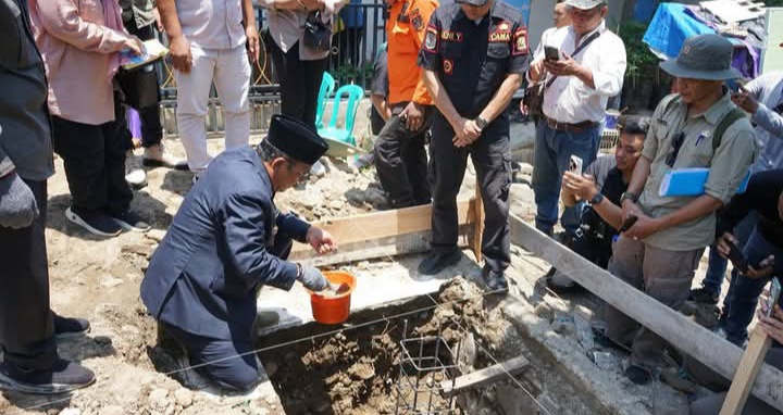 SukabumiLokal | Bupati Sukabumi H Asep Japar meletakkan batu pertama pembangunan rumah panggung bagi warga terdampak bencana di Kecamatan Palabuhanratu, Selasa (14/10/2025). Peletakan batu pertama dilakukan secara simbolis di Kampung Gumelar RT 02 RW 22, Kelurahan/Kecamatan Palabuhanratu.