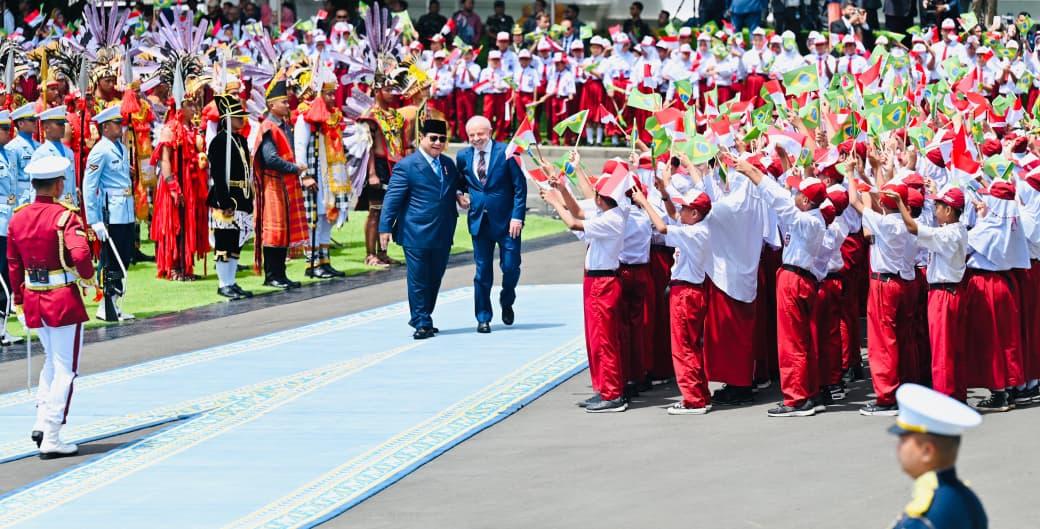 Ketika prosesi dilanjutkan ke halaman Istana Merdeka untuk upacara penyambutan resmi, Presiden Lula turut memberikan tepuk tangan ke arah barisan pelajar sekolah dasar yang melambai gembira. Presiden Lula juga sempat menyapa anak-anak yang hadir, menciptakan suasana hangat dan akrab di tengah upacara kenegaraan yang khidmat.