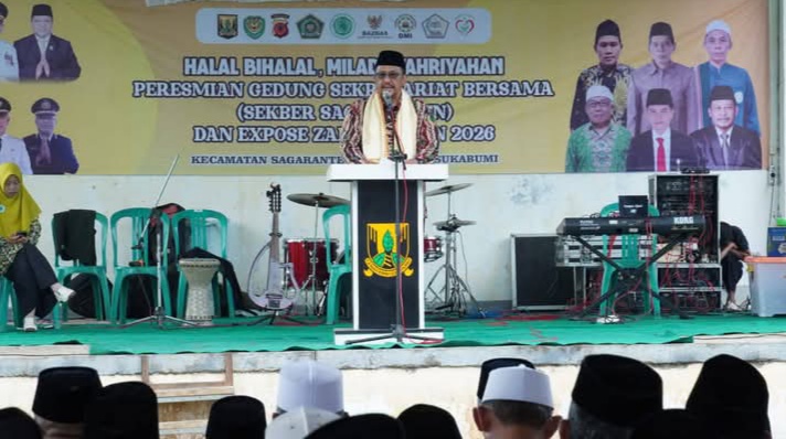 “Mari kita terus menjaga kerukunan di Kabupaten Sukabumi, termasuk di Sagaranten,” ujarnya saat meresmikan Gedung Sekretariat Bersama (Sekber) Sagaranten di area Kecamatan Sagaranten, Kamis (09/04/2026).